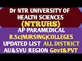 Dr NTR University of Health sciences Carries out the admission process In B.Sc (Nursing) ,BPT,MLT and Various Paramedical Courses Located in Andhra pradesh. it is further Divided into Andhra University(AU) Region and Sri Venkateshwara University (SVU) region.